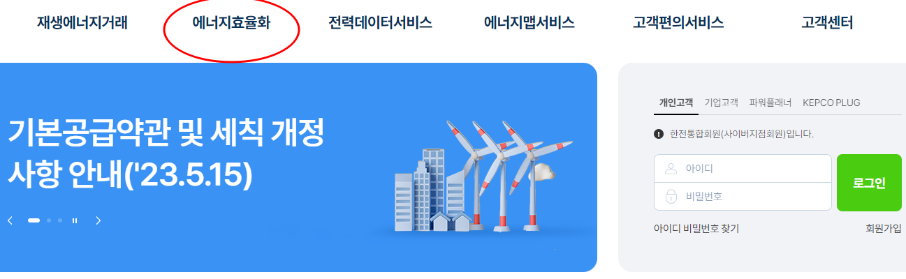 우측상단 에너지효율화 클릭 후 참여신청하시면 가능하십니다.