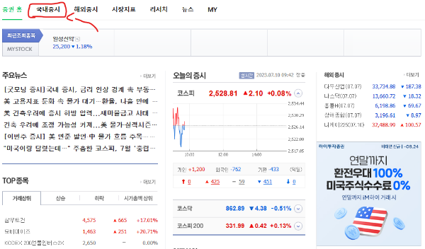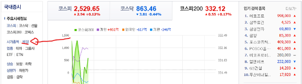1. 네이버 증권에 들어가셔서 국내 증시를 클릭해 줍니다.