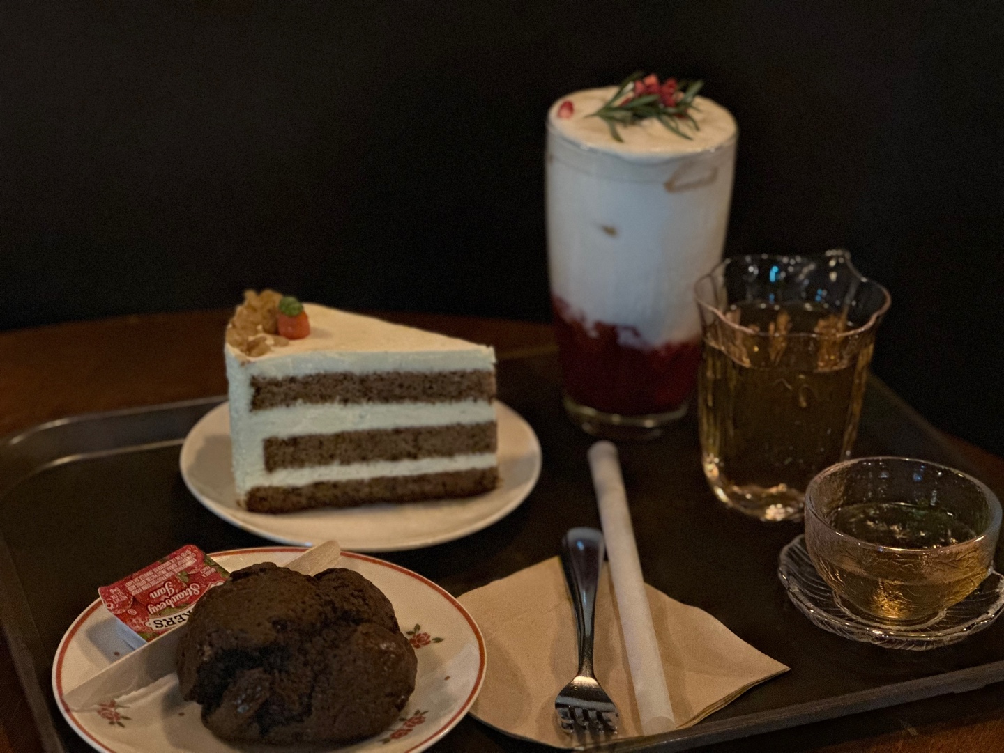 주문한 음료와 디저트가 나왔습니다.