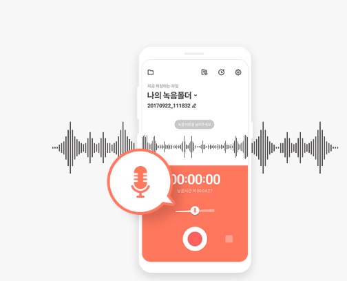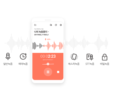 예약 녹음, 제스처 녹음, STT 녹음, 비밀녹음 등 녹음 방법을 스마트하게 선택할 수 있습니다.