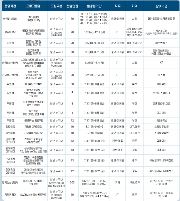 2. 인턴형(프로젝트형) 프로그램 내용을 봤는데 기업(프로젝트)이 여러개 있어요. 어떤 기업에서 인턴을 하는 건가요?