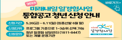 신청문의 : 청년 일경험 상담센터(1811-8447) 또는 개별 운영기관