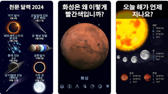 그리고 우리가 알고 싶던 일식, 화성의 위성등 다양한 천문학 자료들을 찾아서 볼 수 있어, 우주에 대한 궁금증 또한 풀어낼 수 있습니다.