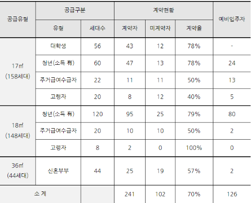 '공덕 크로시티'는 청년층의 주거안정을 위해 서울시에서 주변 시세의 60~ 80% 수준의 임대료로 공급하는 행복주택으로, 청년, 신혼부부, 고령자에게 제공을 하며 총 350세대 입주를 목표로 하고 있습니다.