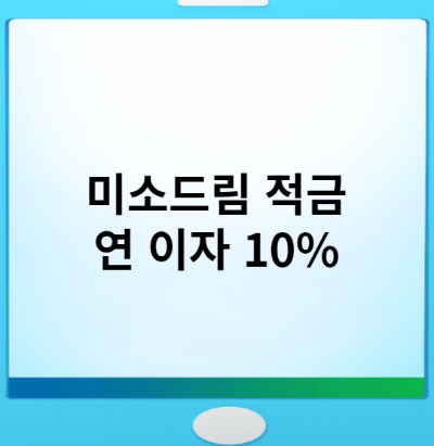오늘은 연 이자 10%에 할당하는 미소드림 적금을 같이 알아보겠습니다. 서민금융진흥원에서 지원하는 상품으로 조건이 개선되었습니다. 만기 때 해지를 하면 연 10% 수준의 이자 수령이 가능합니다. 이자가 높은 점은 좋은나 하나의 단점이 있는데 그것 은 적금액이 낮은 것입니다.