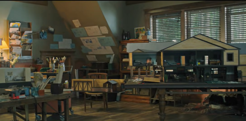 <유전>의 영화 처음 시작하면서 오두막과 모형집을 자세히 보여줍니다.