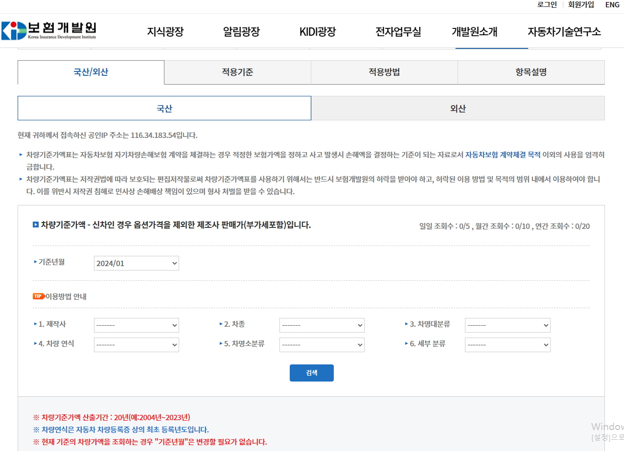 1. 자동차 시가표준액 조회 방법