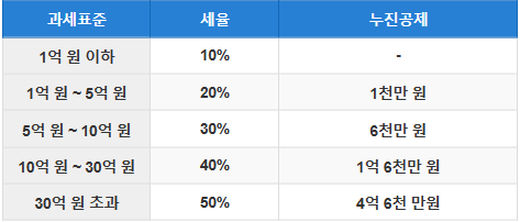 | 30억 원 초과 | 50% | 4억 6천 만원 |