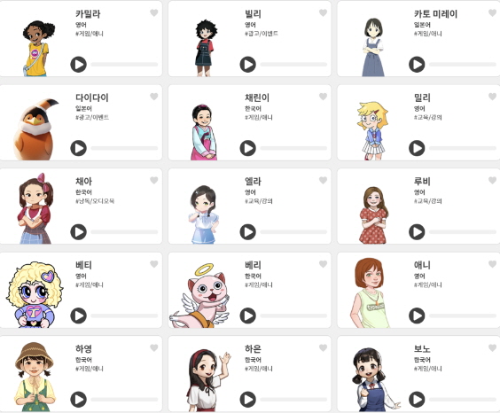 화면에서 보시는 것 과 같이 연예인들 과 인플루언서 등 다양한 분들의 목소리를 사용할 수 있으니 가볍게 다운 받아서 사용하시기를 권장 드립니다.